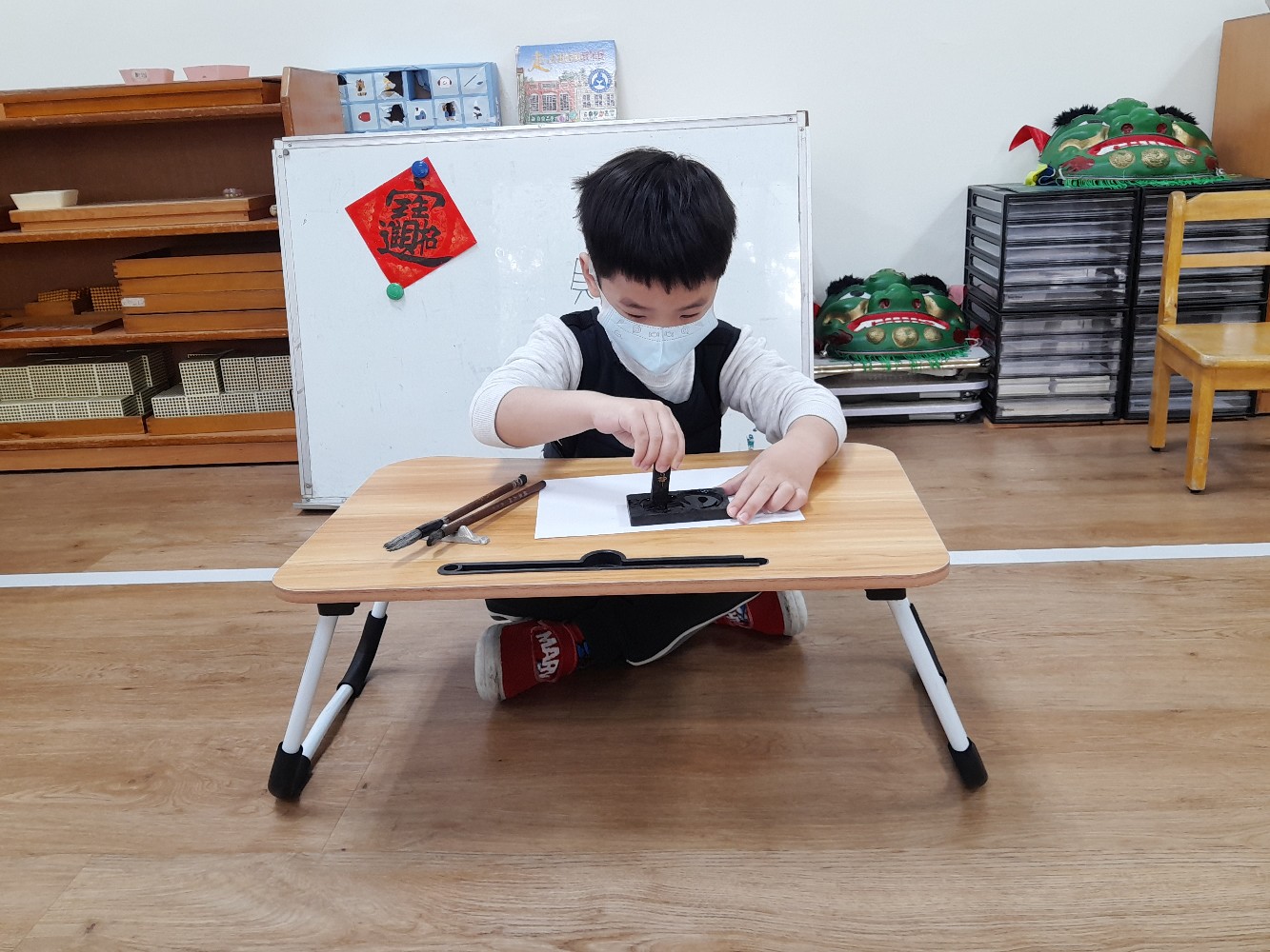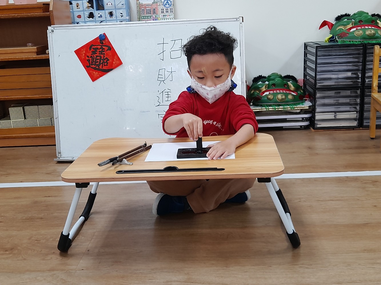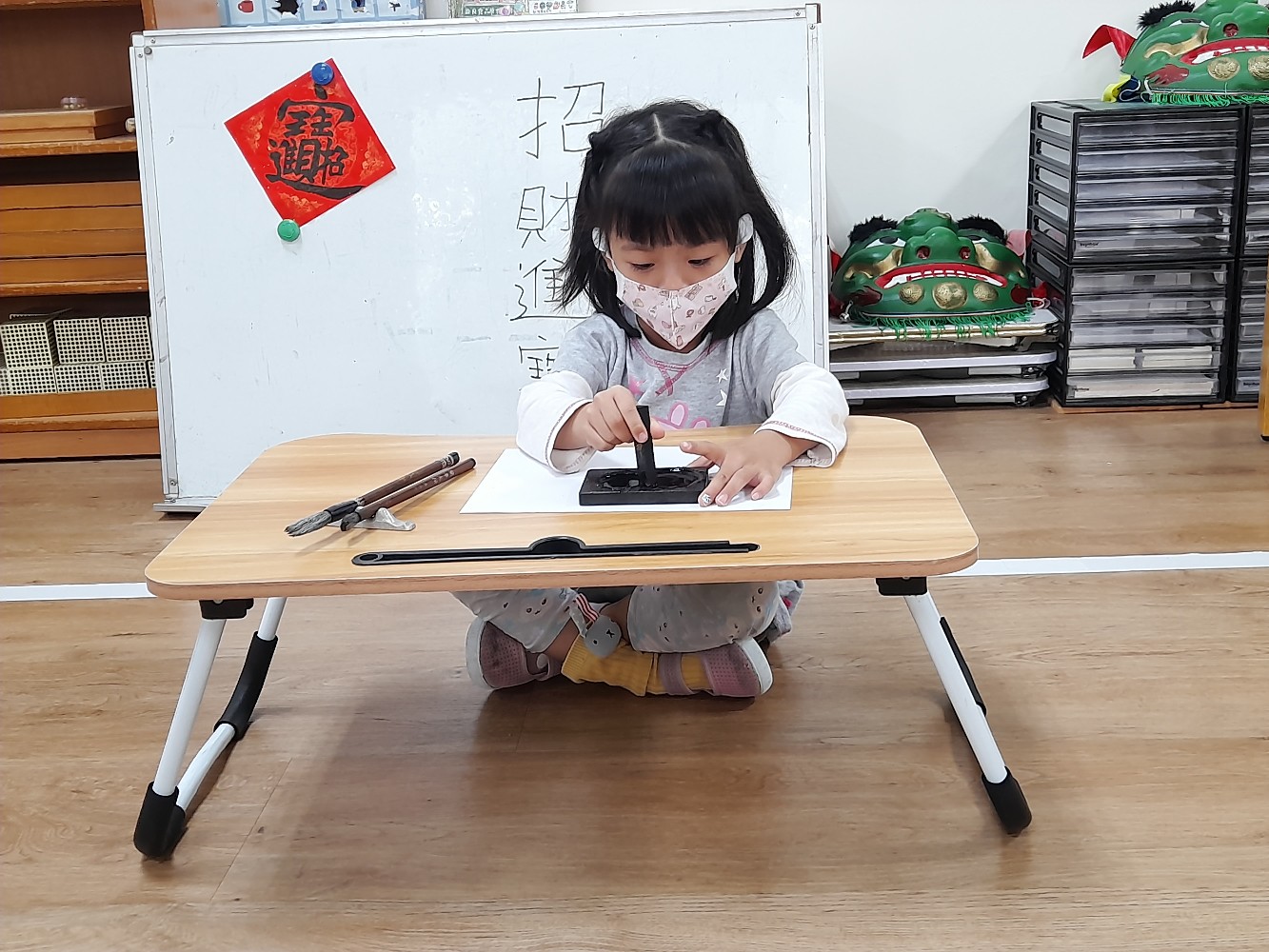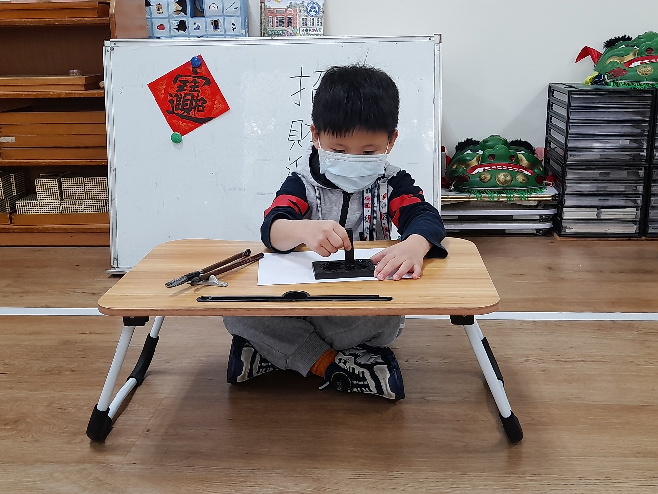 使用硯臺,研磨墨
