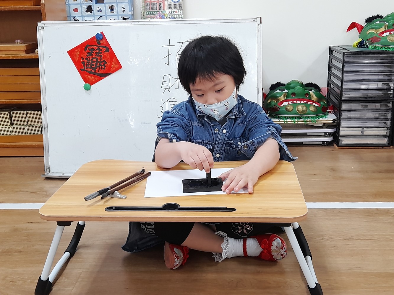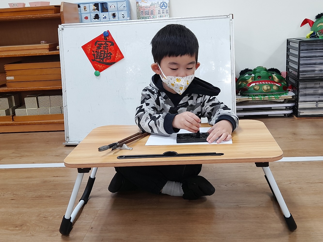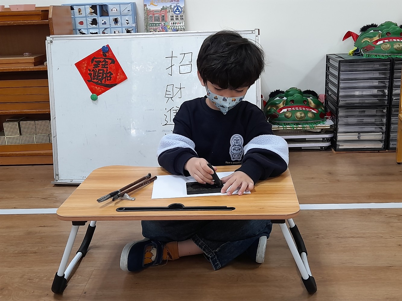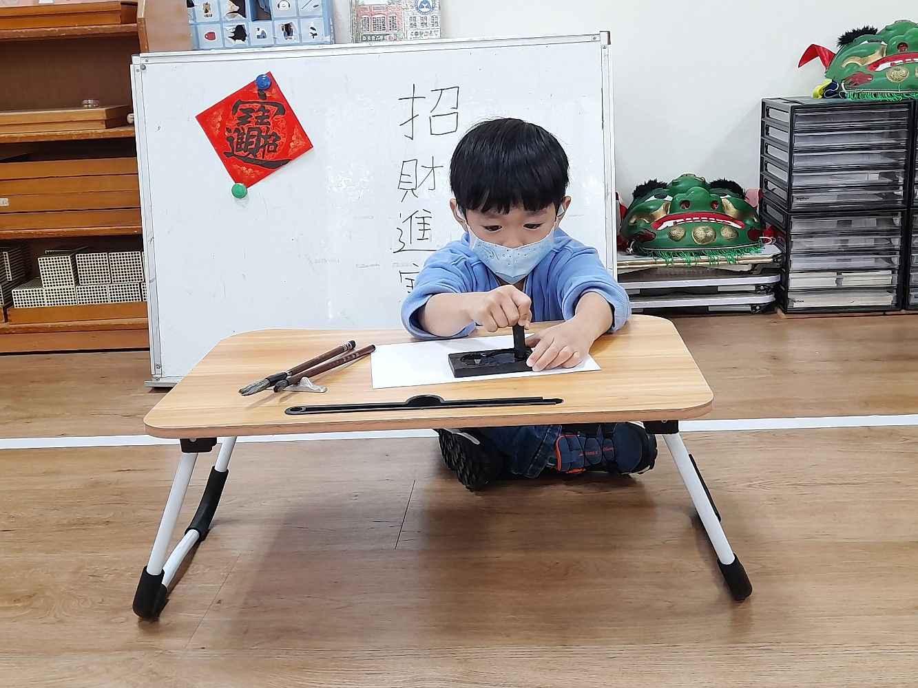使用硯臺,研磨墨