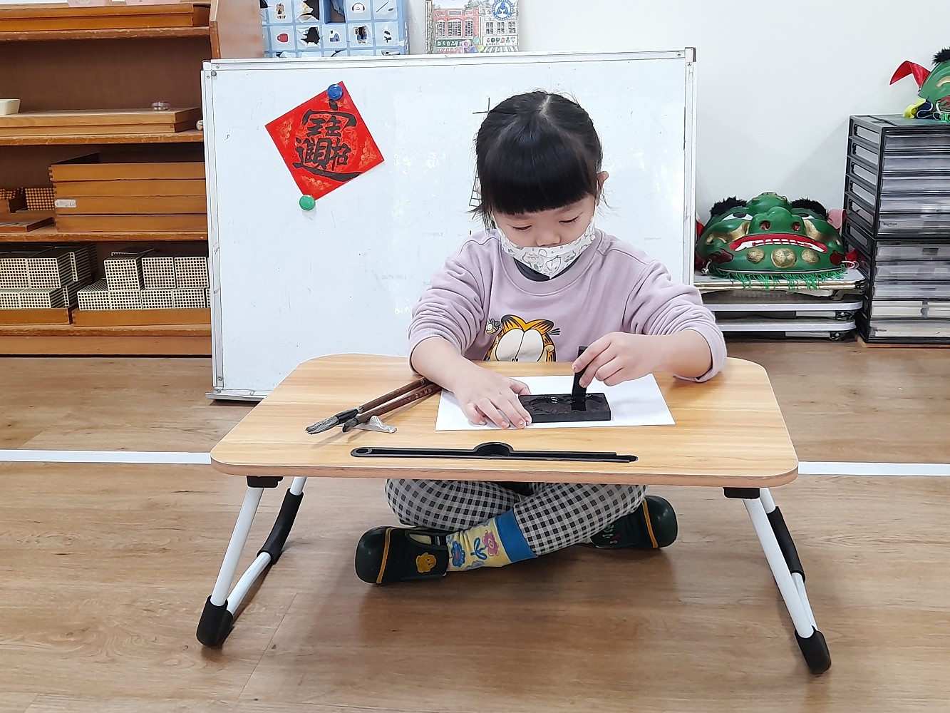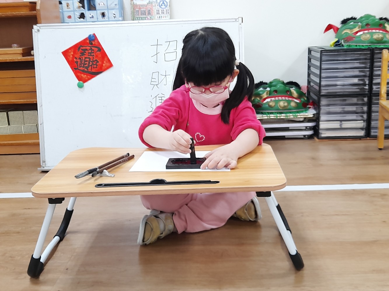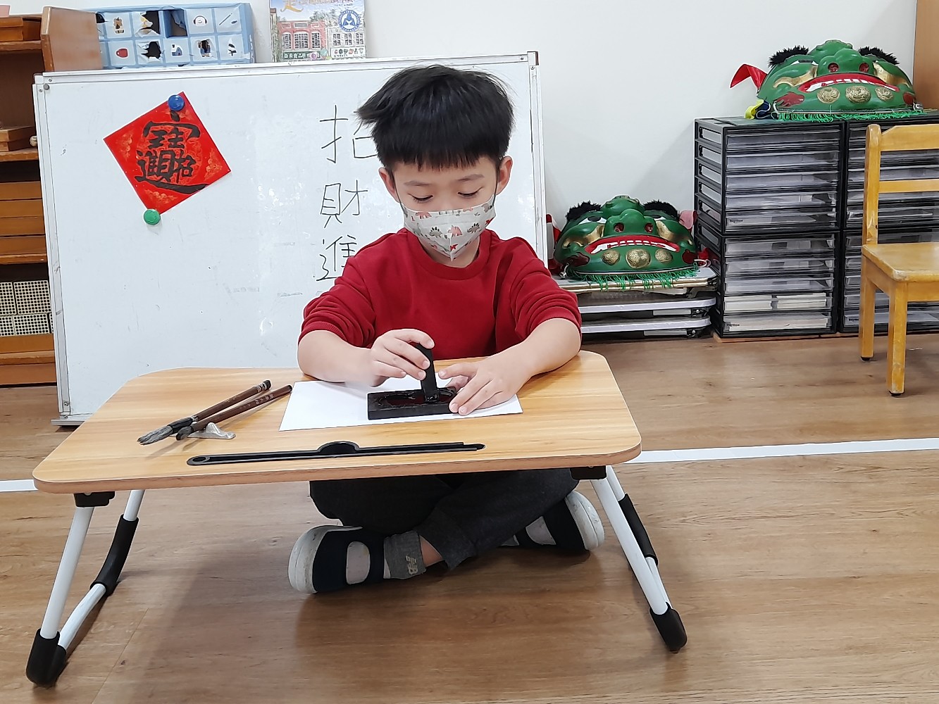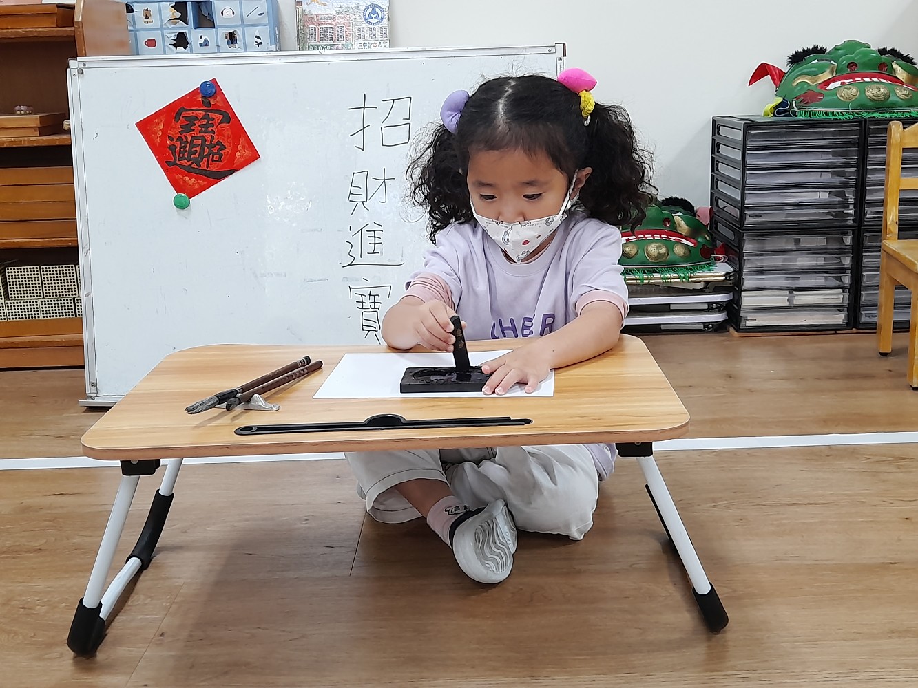 使用硯臺,研磨墨