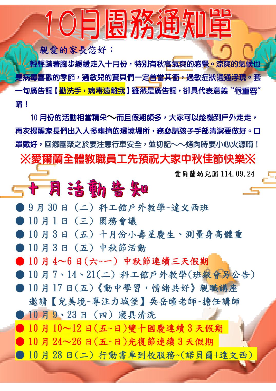 114上學期114年10月園務通知單